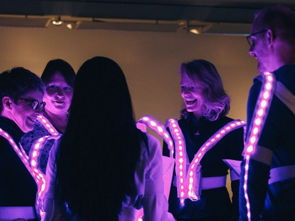 Wearing artist made interactive light wearables, players set out in groups to seek out seven spaces. The aim of the game is to find seven artworks or objects and create a rainbow. Each artwork is ‘guarded’ by a ‘Gatekeeper’ with a remote control which switches the colour of the player’s artist-created illuminated vests. Images taken by the gatekeepers of the teams illuminating the artworks are uploaded to a website. The images combined, form a rainbow that is projected in the museum.