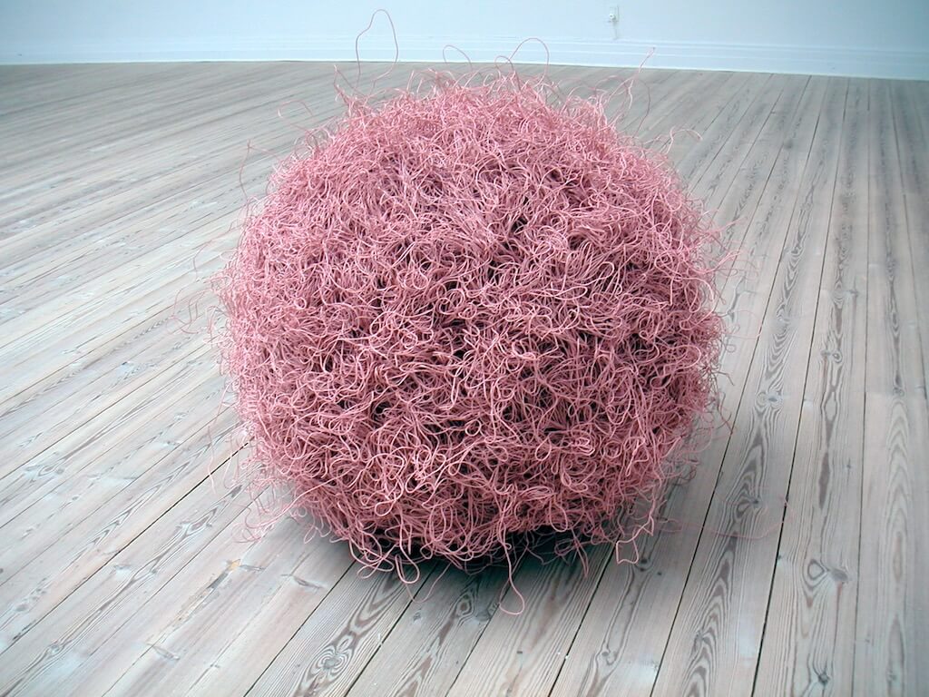 Tumbleweed is an interactive artwork made from electronics. It is a sculpture made from sixteen kilometres of pink wire that resembles a wiry, technological tumbleweed. The tumbling, the process of the making, has made the work what it is.