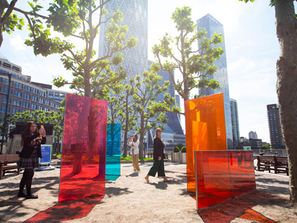 Shine your Colours is a multifaceted artwork that allows visitors to see themselves and the world through different colours. Its currently on exhibited at Riverside, Canary Wharf, London until 21 Aug 2021 at Summer Lights, Canary Wharf, London – Exhibition of Public Artworks.