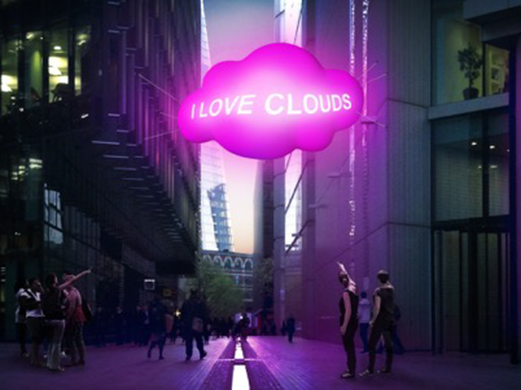 Two (or more) massive stunning clouds hang over the city – lighting up and displaying people’s messages they encourage participants to play and connect. Hanging over the cities public spaces: pedestrian streets, in alleyways, or in open spaces these beautiful, colourful clouds invite people to send messages to each other via the clouds. The project explores the power of sharing and how we socially connect through play. Whispering Clouds does not judge you; rather it asks you to play, to share, and to contemplate how we can communicate in new ways in the city, digitally and physically – connecting with each other across communities. The project combines technology, sculpture, text and light playing with the concept of cloud computing. It is a playful physical manifestation of the digital cloud, but it is also the dream of clouds and happiness; lying on our back, watching the clouds drift by. Clouds allow us to dream and invite us to see the world in new ways.